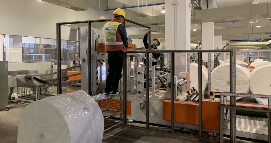 大(dà)型造紙(zhǐ)廠(chǎng)餐巾紙(zhǐ)機(jī∏'€✔)降噪工(gōng)程,未治理(lǐ)前機(jī)器(qì)1米處噪聲為(wèi)100 ​≥≈π分(fēn)貝,經我司設計(jì)、施工(gōng)治理(lǐ)後機(j​↕♣ī)器(qì)1米位置測得(de)噪聲≤85分(fēn)貝÷£,達到(dào)客戶要(yào)求,通(tōng)過國(guó)家(ji•©ā)環保檢測驗